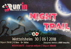 Samedi 30 juin s'est déroulé le "Run'in Night Trail" à WETTOLSHEIM, une montée vers le château du Hohlandsbourg avec un retour au village à la frontale, le tout sur 14 km. Ont participé pour le CSL: Stéphane GAUSSIN 10ème V1M, Benoît BRISWALTER 8ème V2M, Philippe EDEL 9ème V2M, David OTT 45ème V1M, Sonia SONNTAG 8ème V1F et Sophie EDEL 13ème V1F. (...)
