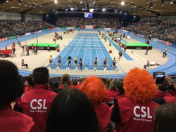 50 licenciés et proches du CSL ont assisté, vendredi 31 janvier, à un prodigieux Meeting d'Athlétisme à KARLSRUHE. A droite, une photo extraordinaire de Renaud LAVILLENIE se prenant en selfie devant ses fans venus de NEUF-BRISACH !