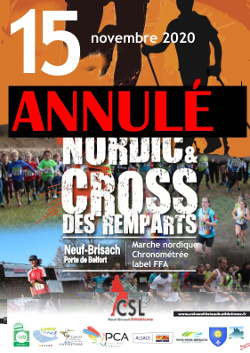Le 31 août dernier, le comité du CSL NEUF-BRISACH a décidé d'annuler toutes les manifestations sportives que l'association devait organiser pour les 6 mois à venir. Cela concerne le Nordic & Cross des Remparts (15/11/2020), sa participation à la Corrida Jean Ritzenthaler (27/12/2020) et l'organisation des Championnats Pré-Régionaux de Cross zone Alsace (10/01/2021). Nos infrastructures et nos moyens internes s'avèrent trop limités par rapport aux contraintes sanitaires exigées, sans parler des trop fortes incertitudes liées à l'évolution de l'épidémie de la Covid 19. Nous sommes vraiment navrés d'avoir dû prendre ces décisions, mais elles s'imposaient pour respecter la sécurité totale des athlètes qui seraient venus.